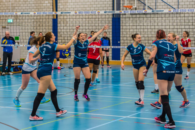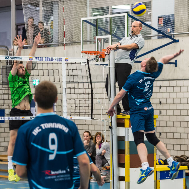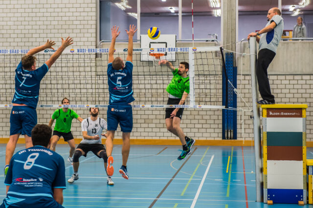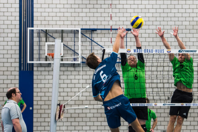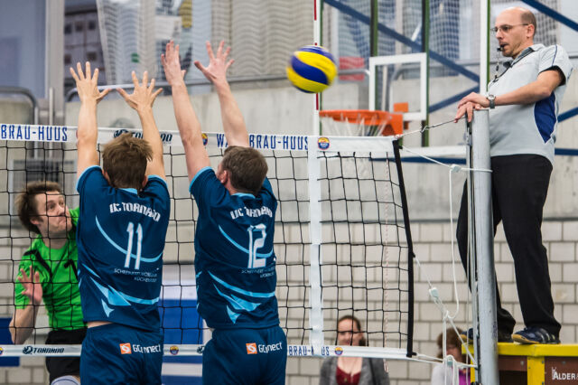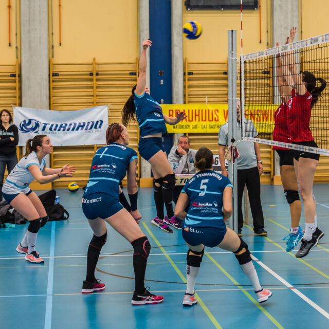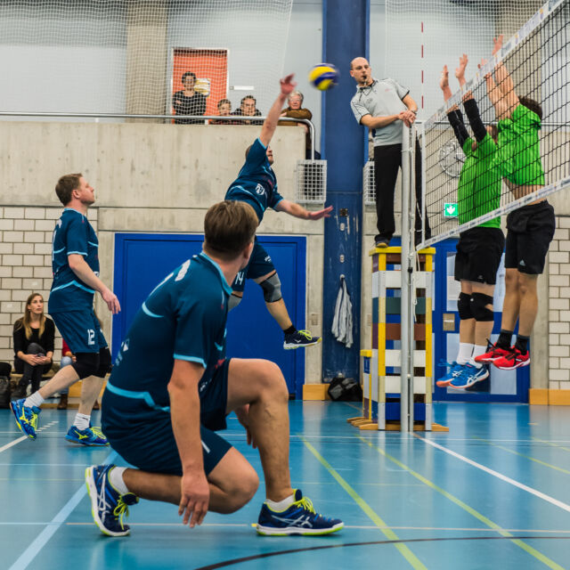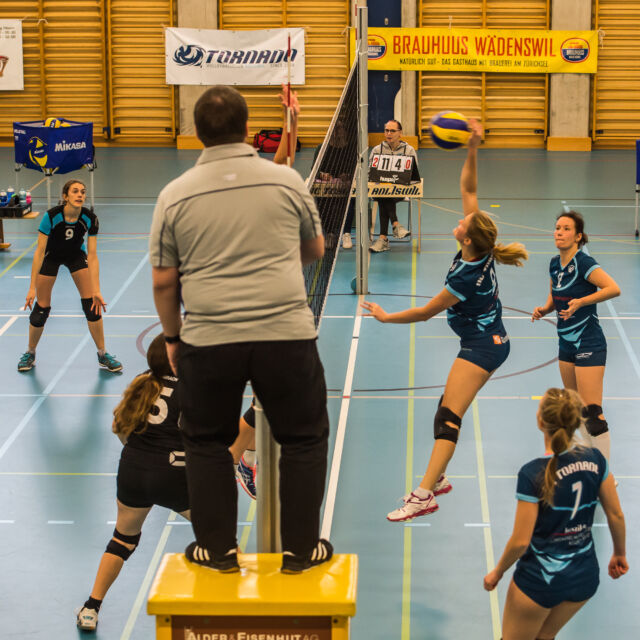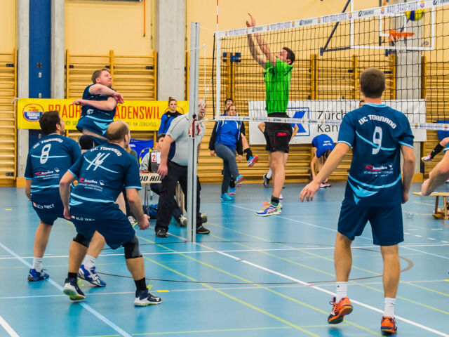 Im zweiten Spiel, um 16:30 Uhr, spielten die Tornado Herrengegen die 1. Herrenmannschaft des VBC Kanti Limmattal. In einem Kopf-an-Kopf Spiel mussten die heimischen Tabellenführer ihre erste Saisonniederlage mit 2-3 hinnehmen, wodurch sie doch noch einen Punkt für sich erzielen konnten.