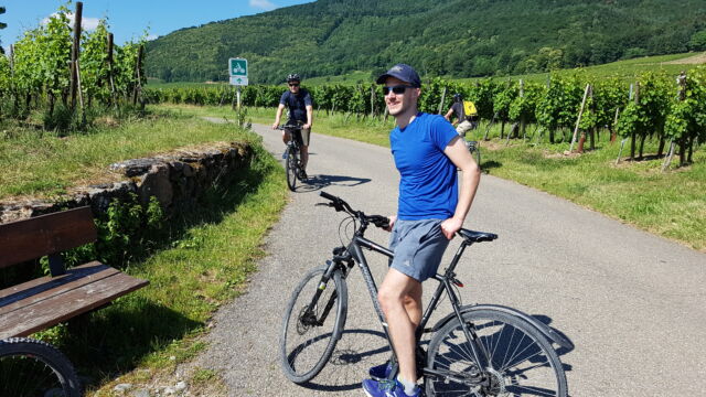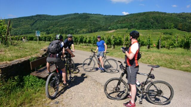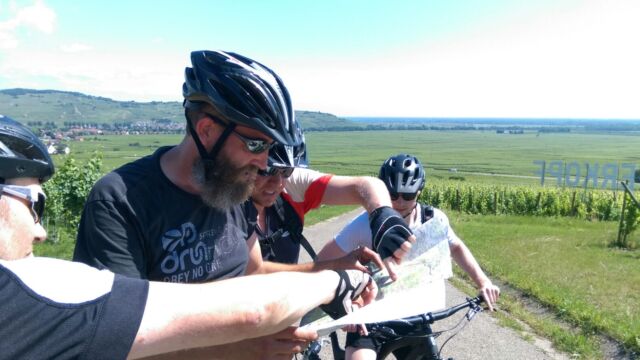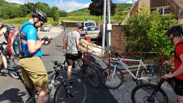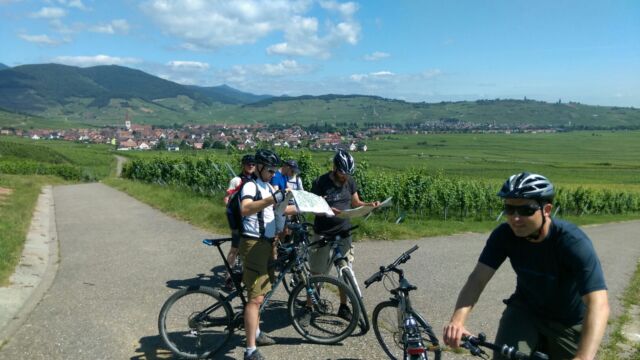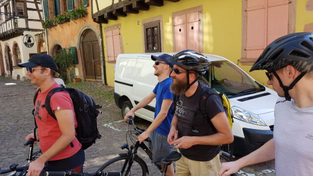 Am Freitagabend machten sich ein paar fleissige Radler mit einem kühlen Bier auf ins Elsass. Der Plan war easy von Weingut zu Weingut radeln und dabei die Aussicht geniessen. Im malerischen Dorf Riquewihr testeten wir sogleich die Geduld der Polizei und Bevölkerung mit unseren Auto-Fahrkünsten mit Anhänger in engsten Gassen und bezogen anschliessend unser Quartier im Hôtel Saint Nicolas. Nach gediegenen Abendessen klapperten wir erfolgreich noch alle offenen Bars und Discos ab (voll krass).